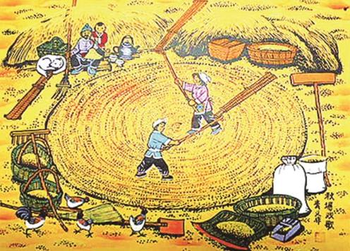 打場有“打暖場”“打凍場”和“打飽場”之分。啥叫“打暖場”呢?就是不等場院上凍就開始打場,像仲夏時節打麥子一樣,莊稼拉到場院以后,倒出功夫,干了緊打,以免減少損失。如宋代范成大在《打場》詩里所描繪的那樣:“新筑場泥鏡面平,家家打稻趁霜晴。笑歌聲里輕雷動,一夜連枷到天明。”打暖場好處很多,一是避免鼠咬蟲害,發霉變質,確保糧食質量;二是減少牲畜糟蹋;三是天氣暖和,人不遭罪。打暖場雖然有好處,但是也有“壞處”,就是由于場院沒有凍上,脫谷時場院地面容易“起暄”,脫粒的糧食容易被踩壓進土里。沙土混進糧食里,給入庫篩選造成不便。糧食里沙土含量過多,發生霉變,影響糧食品質,甚至因為雜質多而賣不上好價錢。