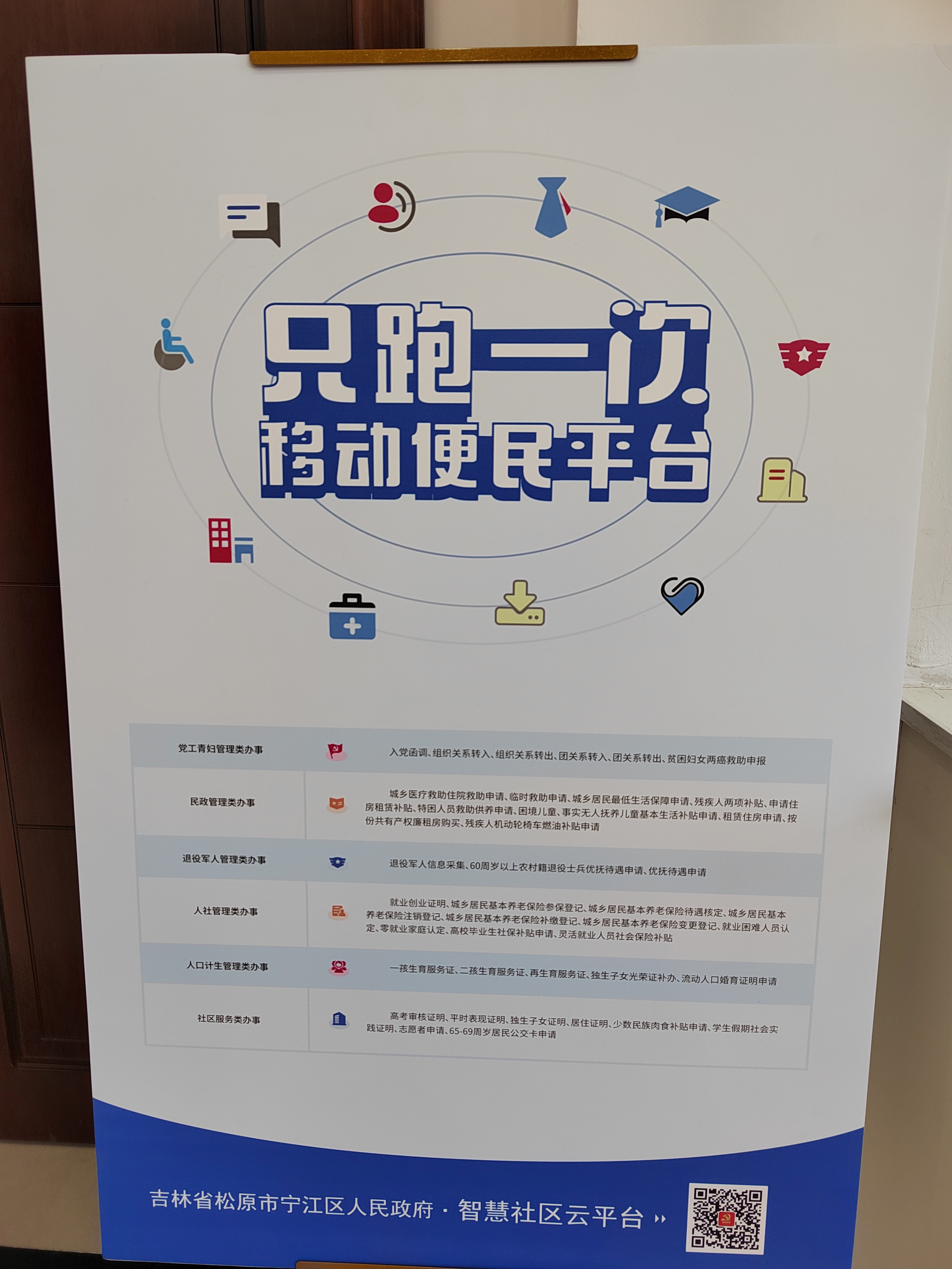 “智慧社區(qū)”平臺(tái)便民服務(wù)事項(xiàng)全面覆蓋黨建、民政、人社、人口計(jì)生、退役軍人、社區(qū)服務(wù)等六大類44項(xiàng)辦事項(xiàng)目,“智慧寧江”公眾號(hào)面向全區(qū)群眾開(kāi)放服務(wù)。全市企事業(yè)單位按行業(yè)分類,在電子地圖上精準(zhǔn)定位,居民可以通過(guò)手機(jī)端快捷到達(dá)目的地。居民通過(guò)街道微信公眾號(hào)就可以直接訪問(wèn)辦事平臺(tái),查找所需辦理事項(xiàng),查看辦事依據(jù)、所需材料、辦結(jié)時(shí)間等詳細(xì)信息。智慧政務(wù)的未來(lái),不僅僅限于只跑一次,而是要實(shí)現(xiàn)群眾辦事一次不跑。