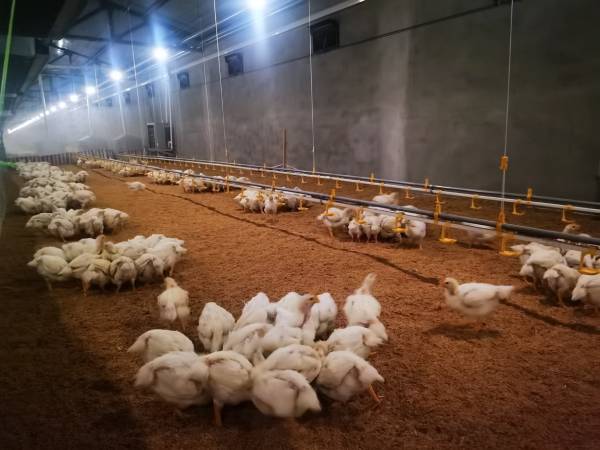 養殖場場長蔡彥亮興致勃勃地告訴記者,像這樣的雞舍,這里有8棟,設備都是最先進的,節省人力不說,最大限度提高了生產效率。經過40多天的養殖周期后,這些肉雞被加工成100多種產品發往全國各地。雞舍中雞糞也是自動化處理,運到集團有機肥廠后,進行循環利用。