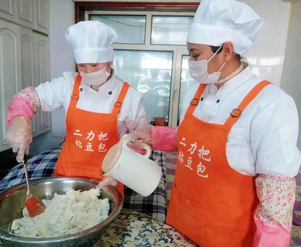 當下,這里的隆冬不再是純粹的東北農村“貓冬”季,徐云忠夫妻倆在黏豆包制作旺季,帶著大家忙碌在案臺邊,和面、烀豆餡、攥豆包......用一道道傳統工序,讓一個個香甜的黏豆包一天天成為鼓起腰包的“金豆包”。今年入冬至今,黏豆包日產量500斤、總產量達到2萬余斤,杜玲等12名員工和附近村民務工收入每月達2000余元。