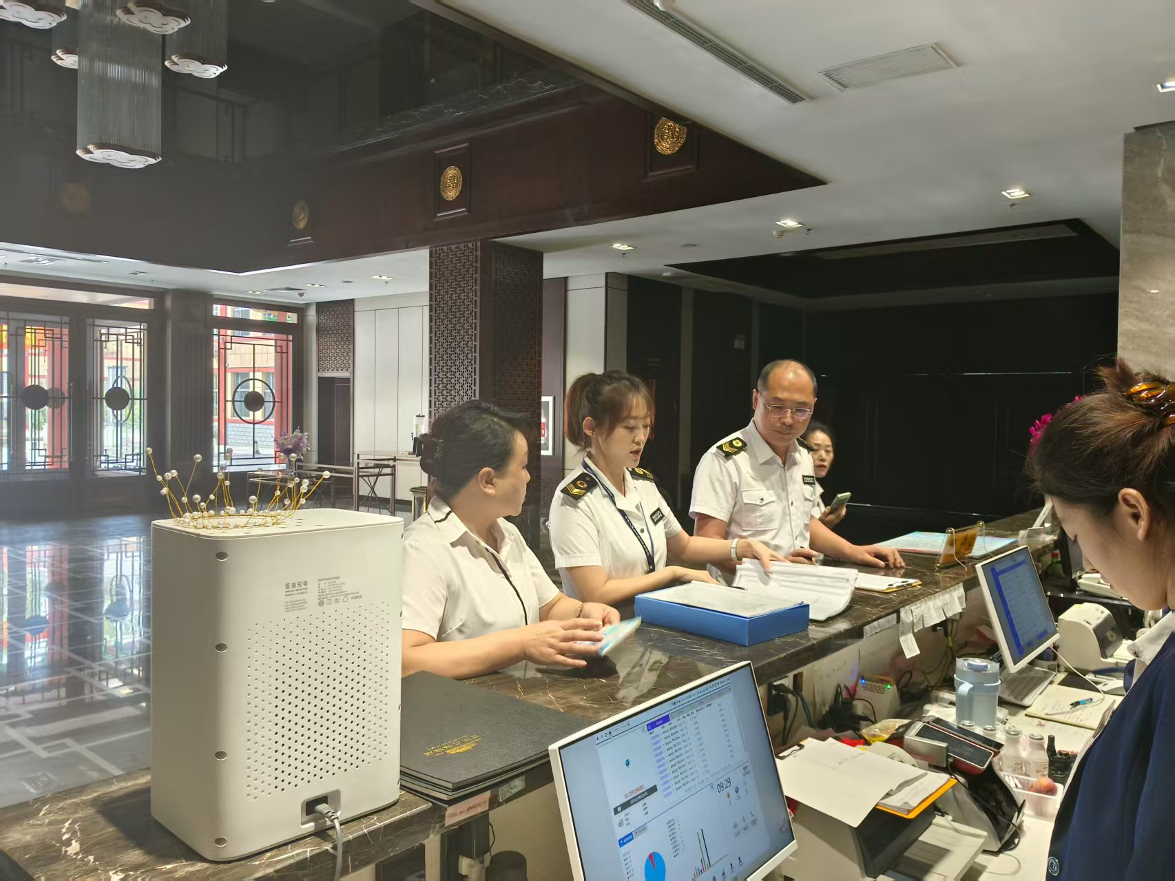 檢查圍繞證照是否齊全并在有效期內、衛生管理制度落實、布草間的設置、公共用品用具清洗消毒、從業人員健康管理、衛生知識培訓情況進行抽查。通過檢查,各賓館酒店衛生管理體系較為完善,能嚴格落實各項管理措施,部分連鎖酒店結合臨江市地域特色,在衛生服務細節上創新優化,如提供一次性衛生用品分類收納盒等,既提升了衛生安全保障水平,也增強了游客住宿體驗。針對薄弱環節,衛生監督人員進行了指導,并利用微信工作群要求各賓館酒店要嚴格遵守有關制度規定,切實樹立責任意識和法律責任。