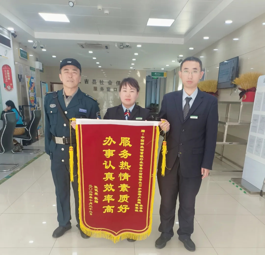 客戶表示,對永吉縣支行營業部這種貼心、高效的服務深受感動,內心充滿了感激之情。為了表達謝意,特意送來錦旗,錦旗上的每一個字都飽含著對郵儲銀行永吉縣支行營業部服務的高度認可和贊揚。