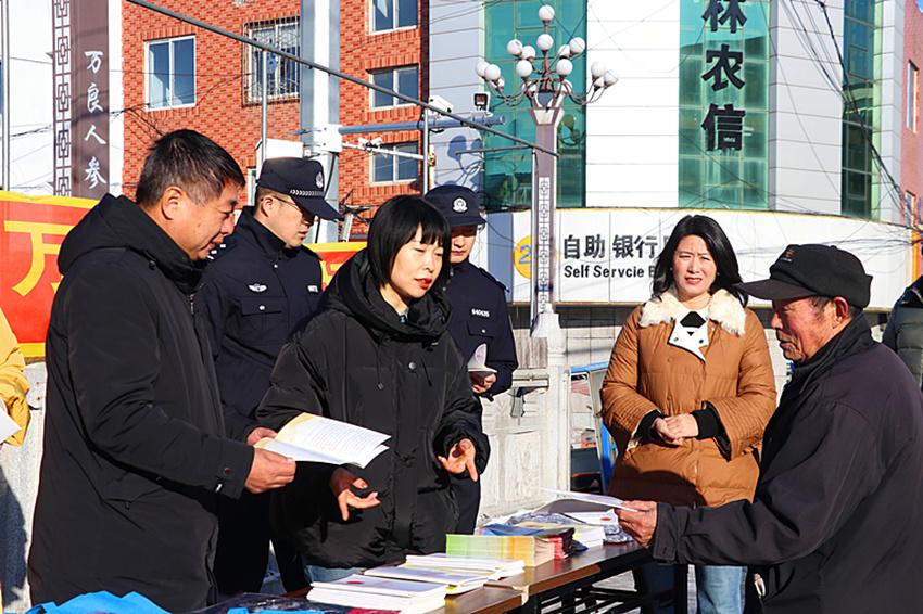 為進一步弘揚憲法精神,全面建設法治中國,12月4日,在第十一個國家憲法日到來之際,撫松縣人民法院機關普法干警來到撫松鎮(zhèn)人群密集地段參與全縣憲法日社會宣傳活動。當日,萬良法庭(人參產業(yè)法庭)也在駐地與鎮(zhèn)司法所、派出所、法學會法律基層服務站等單位走上街頭聯(lián)合開展憲法日普法活動,院庭同頻共振迅速掀起普法外宣活動新熱潮。