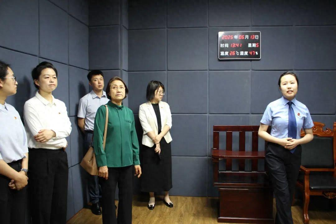 應邀人員與師生代表在檢察人員的引領下參觀了未成年人檢察一站式辦案區。通過開展沉浸式法治體驗,讓大家對檢察機關在未成年人司法保護、犯罪預防、幫教矯治等方面的工作有了更加深入的了解。