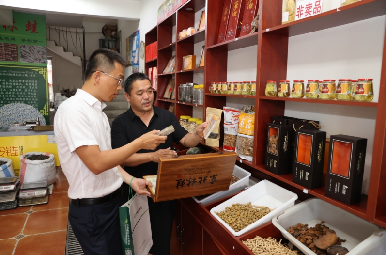 傍晚時(shí)分,樺甸市海波蛤蟆參茸店里依然客流不斷。店主馮海波正忙著給外地客商介紹林蛙油的功效,妻子陳桂華則在電腦前處理電商平臺(tái)的訂單。