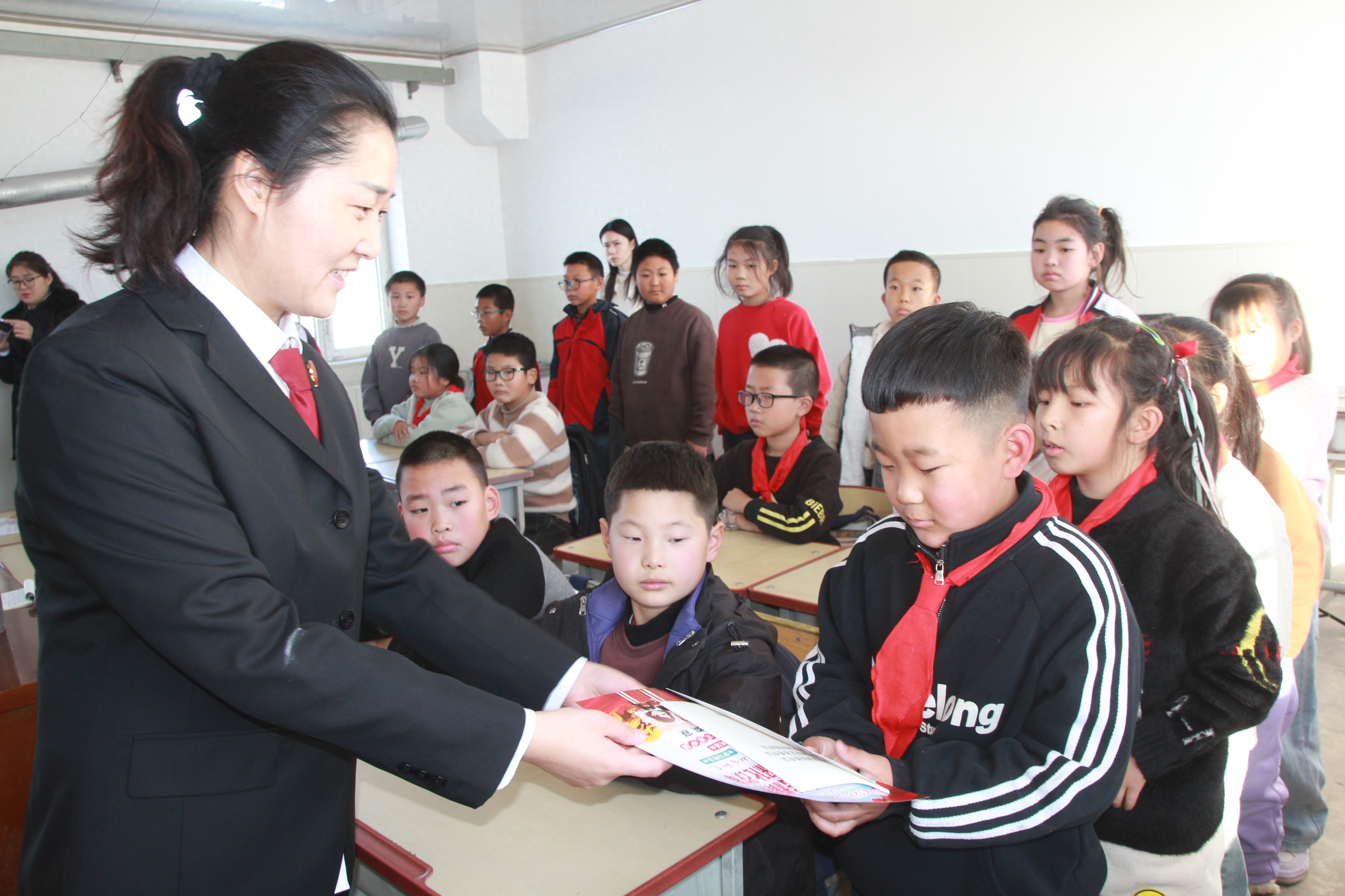 微光成炬,向光而行。隨著“志愿長嶺”建設如期啟動,長嶺縣人民法院積極響應號召,主動扛起司法機關社會責任,以“法徽紅”點亮“志愿紅”,通過一系列有溫度、有力度、有深度的志愿服務活動,為營造向上向善的社會風尚注入法治動能。 法育校園,三尺講臺傳法理 從人民法院的審判臺走向菁菁校園的三尺講臺,長嶺法院的法官、干警化身普法志愿者,在每年的開學季、兒童節、國家憲法日等重要時間節點,走進轄區中小學校,借助未成年人身邊的真實案例和生動有趣的法律故事,為孩子們筑起堅實的法律“防護墻”。在不斷推進法治副校長“走入校園、走上講臺、走進決策會議、走在師生周圍”的過程中,實現從“臨時普法員”到學生“法律領航員”、教師“法學指導員”、學校“法治保障員”的全面轉型。截止至2025年8月,長嶺法院累計開展校園普法活動4場,覆蓋師生超3000人次,為保護未成年人合法權益、促進未成年人健康成長注入司法力量。