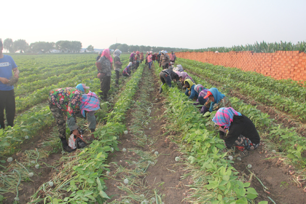 7月12日,走進榆樹市桂家村,100余人在農民馬占有家承包田里干得熱火朝天,他們在熟練地收獲毛蔥。