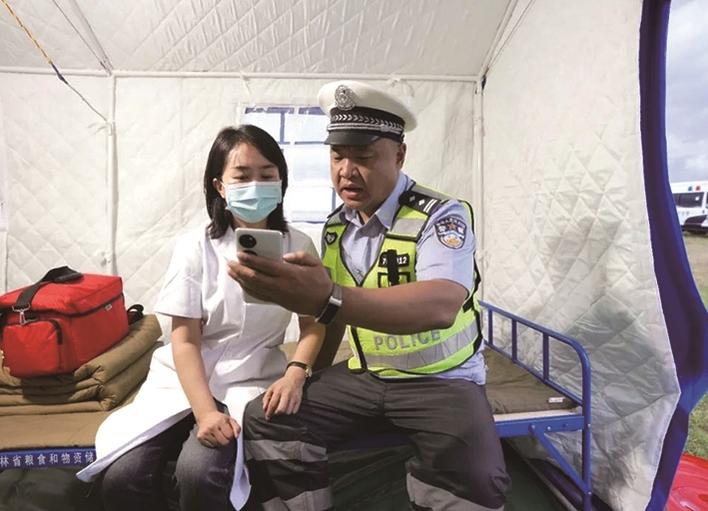 日前,松花江洪峰過境,松原市啟動了防汛二級應急響應。田明輝與苑穎妲這對警醫“夫妻檔”共同奔赴防汛一線。作為交警特勤大隊大隊長,田明輝負責堤壩的順暢與安全;作為醫生,苑穎妲則為防汛隊伍提供醫療保障。