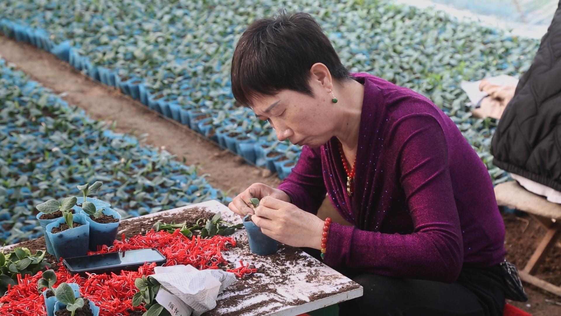 梨樹縣的瓜菜嫁接技術起步早、發展快,目前已經形成了零散農戶嫁接育苗和工廠化嫁接育苗兩種模式。全縣建有2個標準化育苗基地,年育苗能力達3000萬株,還有十余個零散農戶育苗點,主要供應周邊村屯的農戶。此外,當地還組建了幾支由技術嫻熟的農村婦女構成的專業嫁接苗團隊,她們每人每天最多可嫁接2000株,日薪在200至300元之間。嫁接團隊的張阿姨一邊忙著手里的活兒一邊說“嫁接是個技術活兒,但大地農閑時還能掙錢挺有成就感的。”