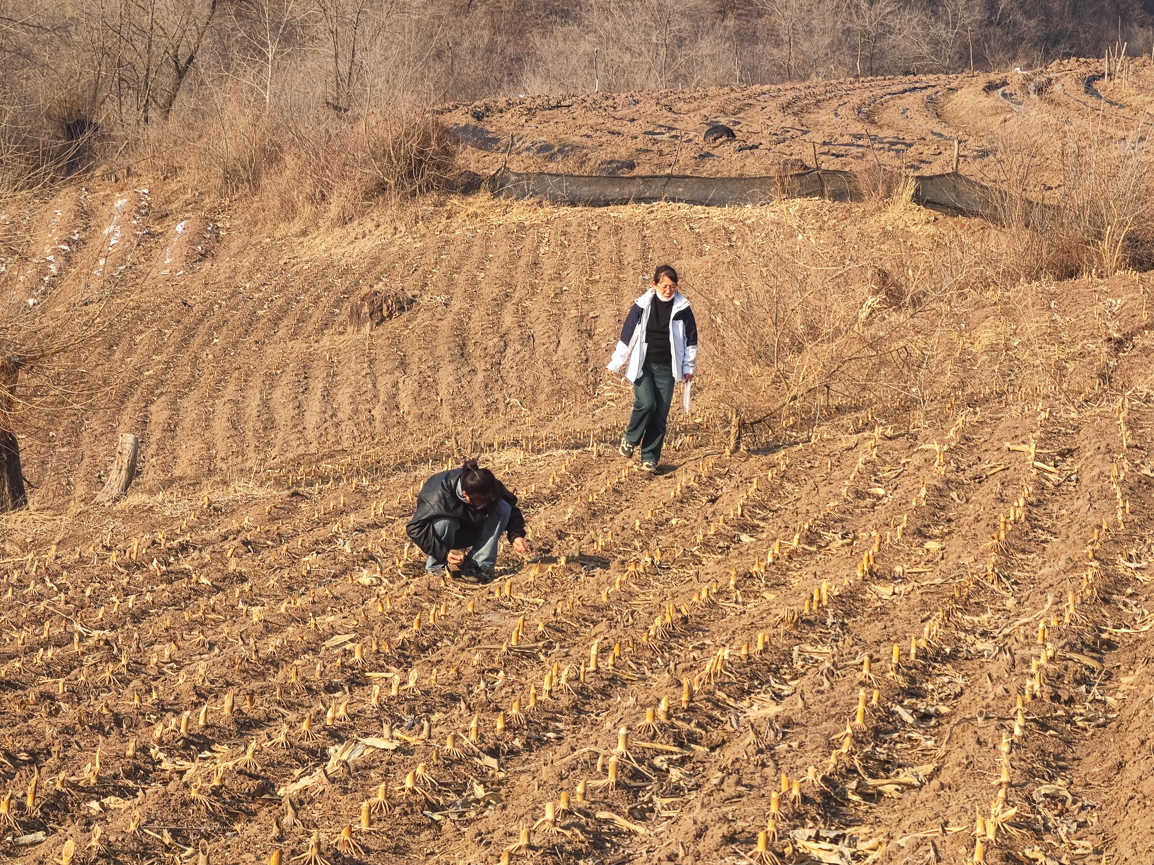 “祖輩說這片山梁形似馬蹄,珠子河繞著山根流,早年漫山都是整齊排列的李子樹。”當地村民的口述為“二普”時期發現的“李子行遺址”增添了鮮活注腳。這里曾出土新石器晚期至青銅時代的陶器殘片,而靖宇縣像這樣需復查的文物點共有101處。調查之路并非坦途:軟件故障導致數據丟失、遺址坐標偏移、莊稼遮擋拍攝視角,更有長白山余脈的自然挑戰——山高林密、雨季與初雪壓縮外業時間。