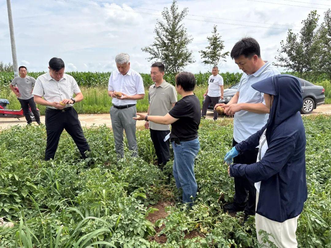 隨后項目組成員來到長嶺縣三青山鎮,與鎮黨委相關領導、基地負責人及技術人員對馬鈴薯膜下滴灌水肥一體化高效生產技術的示范情況、品種表現、病蟲害防治及肥水管理情況進行交流探討,并對近期工作開展提出相關指導意見。