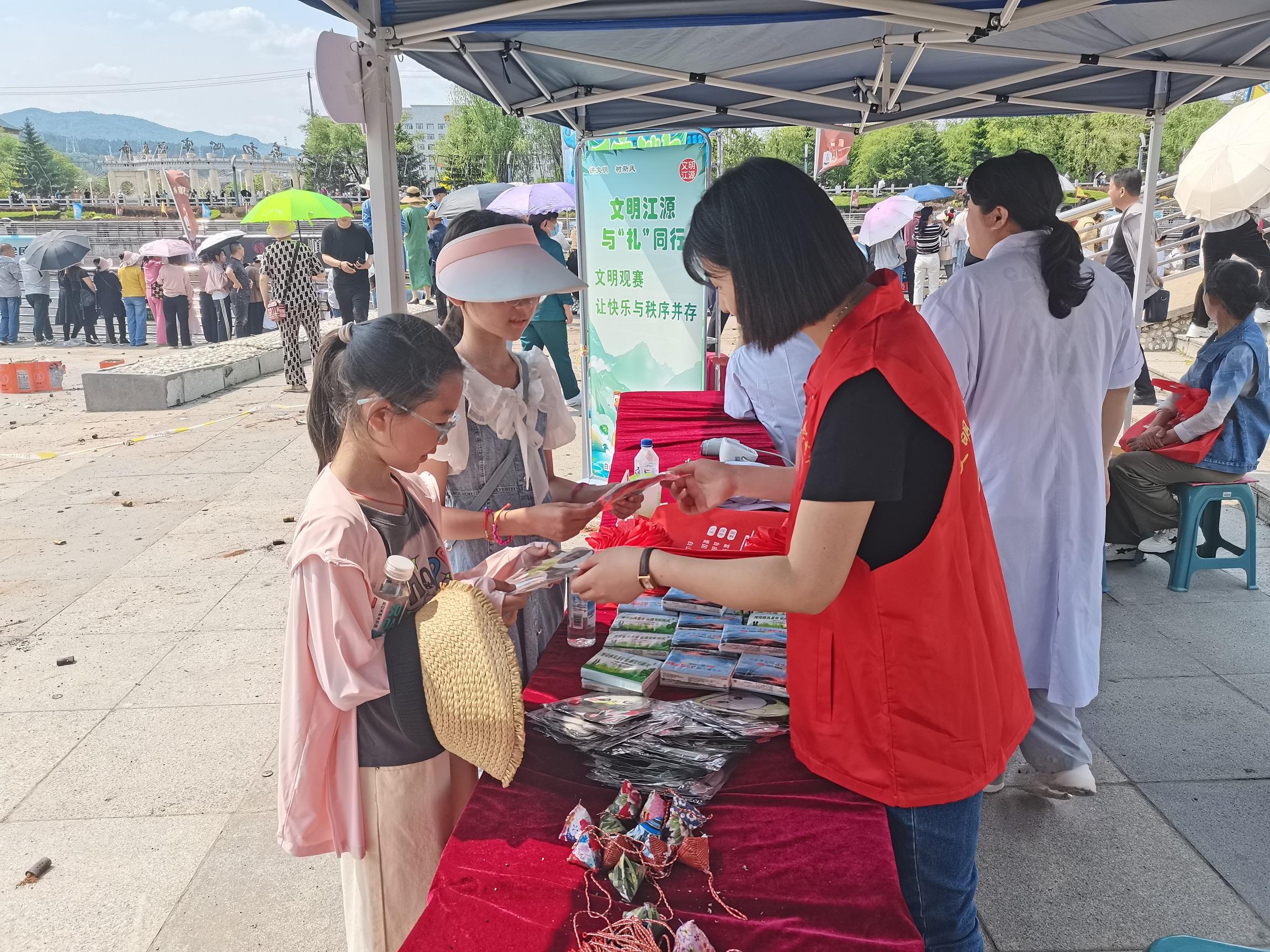 賽場邊的“文明助威”更顯城市溫度。江源區在“我們的節日·端午”,結合江源區特色龍舟賽項目組織開展“情濃端午‘粽’享文明”暨江源區“文明集市”文明實踐活動。“文明集市”上志愿者們通過發放宣傳手冊、現場講解等方式,向群眾普及文明行為的重要性。在宣傳文明觀賽時,向群眾講解觀賽禮儀,倡導文明助威。龍舟賽場上,一條條龍舟如離弦之箭破水而出。岸邊觀賽的市民們熱情高漲,他們有序站立,不推搡、不喧嘩,用文明的方式為選手們吶喊助威。“加油!加油!”此起彼伏的助威聲,凝聚著大家對運動員的鼓勵,彰顯著文明觀賽的良好風尚。