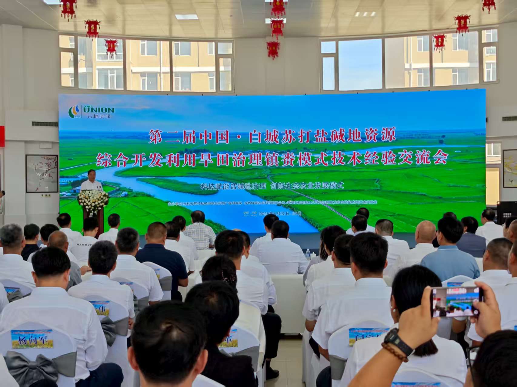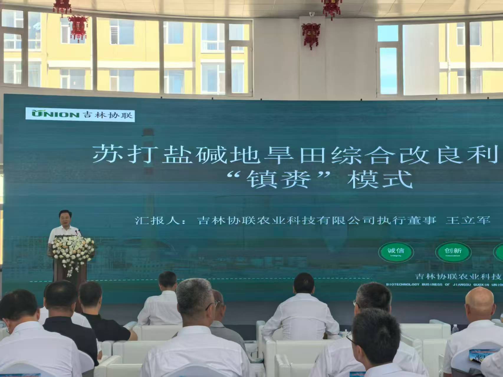 此次交流會由吉林省蘇打鹽堿地綜合利用產業研究院、吉林協聯農業科技有限公司、農業農村部鹽堿土改良與利用(東北內陸鹽堿地)重點實驗室主辦。會上,中國工程院院士沈其榮、中國農業科學院教授段英華、吉林協聯農業科技有限公司執行董事王立軍、吉林省農業科學院水稻所所長侯立剛分別作主旨報告。各企業代表分別圍繞抓好鹽堿地綜合開發利用進行交流發言。與會人員還深入鎮賚縣開展實地考察,玉米、水稻、茭白、甜菜等作物生機勃勃,“稻蟹共養”等生態農業效益初顯,見證了鎮賚因地制宜發展鹽堿地特色農業的成果。