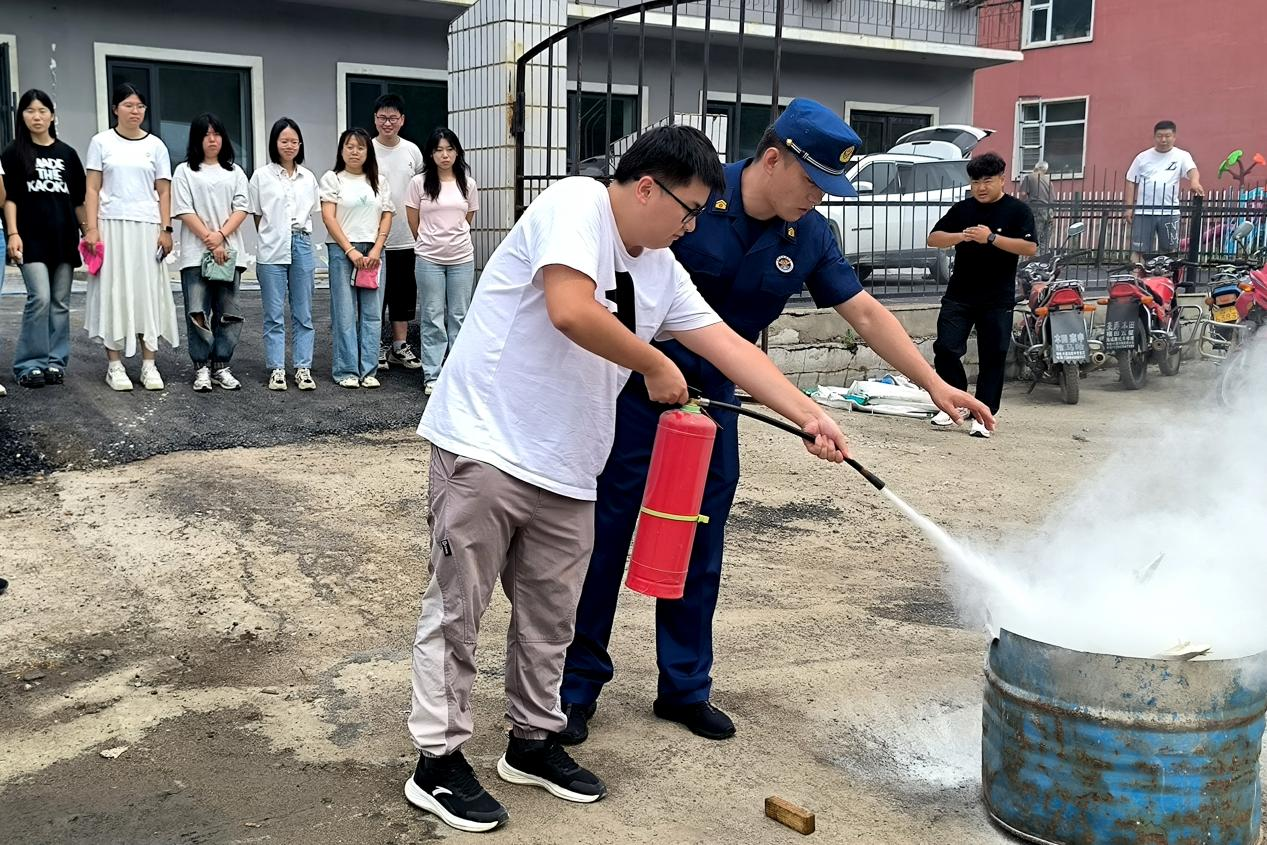下午的消防安全培訓同樣精彩。在六道溝鎮消防站,消防員首先講解了火災預防、逃生自救等知識,隨后帶領志愿者們進行滅火器實操訓練。“一提二拔三握四壓”,在消防員指導下,志愿者們輪流操作滅火器撲滅明火。
