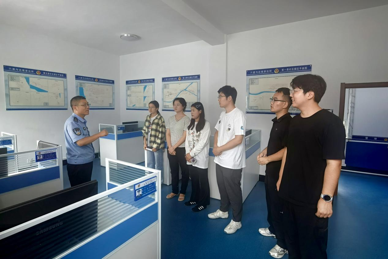 理論學習后,志愿者們走進六道溝邊境派出所實地參觀。在辦案區,民警演示了現代化辦案流程;在裝備庫,防暴服、執法記錄儀等專業設備讓志愿者們大開眼界。來自山東的志愿者陳俊杰穿上沉重的防暴服后感嘆:“這套裝備不僅重量沉,責任更沉。邊境線上的平安歲月,是因為有人在負重前行。”