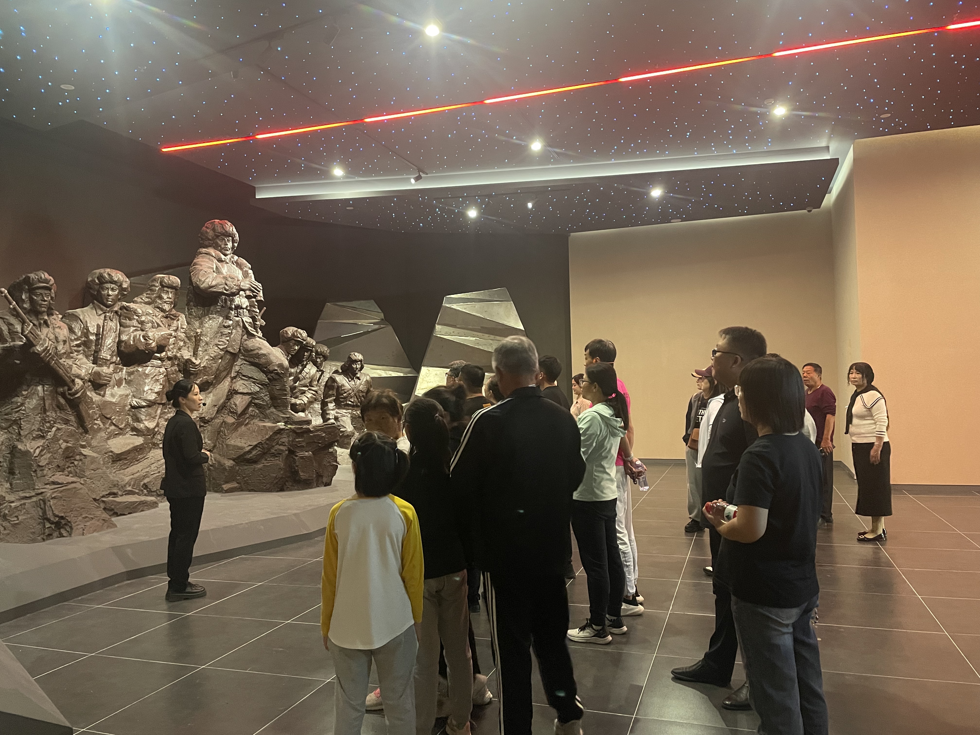 楊靖宇將軍殉國地則成為假期里的“精神地標(biāo)”。升級(jí)后的場館運(yùn)用實(shí)物陳列、場景還原與多媒體互動(dòng)等手段,讓抗聯(lián)精神更加可感可知。黑、遼、京、冀等多地牌照的車輛擠滿停車場,講解員每日固定 4場講解外還需臨時(shí)加場,仍滿足不了游客需求。在泛黃的史料前,游客們靜靜凝視,聆聽英雄故事;在紀(jì)念廣場,不少家庭帶著孩子敬獻(xiàn)花束,接受精神洗禮。