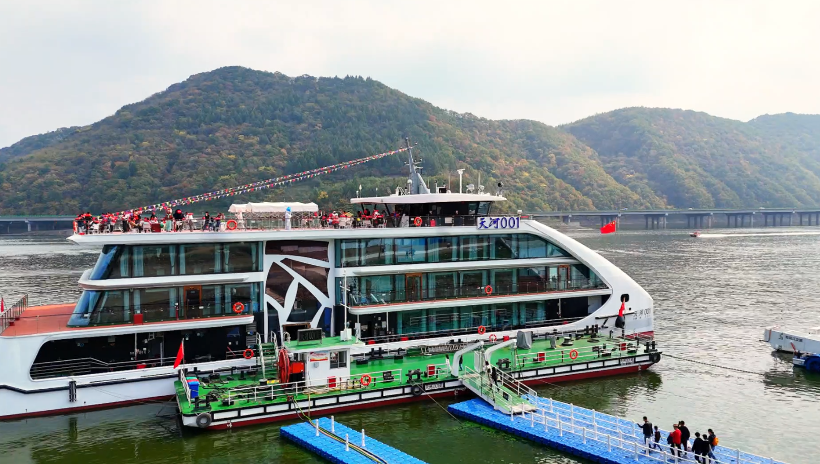 在松花江生態(tài)旅游風(fēng)景區(qū),“一江碧水、兩岸青山”的美景與雙節(jié)氛圍碰撞出獨(dú)特魅力。“天河 001”號(hào)游輪憑借“水上復(fù)興號(hào)”的酷炫設(shè)計(jì),成了游客爭相體驗(yàn)的“網(wǎng)紅項(xiàng)目”,站在甲板上,江風(fēng)拂面、青山入畫,不少游客舉起相機(jī)記錄這愜意時(shí)刻。10月4日,景區(qū)單日游客突破1.35萬人次,“賞江景、品江鮮” 成了很多游客的選擇,來自遼寧沈陽的張先生說:“坐高鐵過來很方便,沒想到靖宇的江景這么美,剛在江邊吃了江魚,鮮掉眉毛!”清晨的瑪珥湖薄霧繚繞,宛如仙境,環(huán)湖徒步的游客沿著步道緩緩前行,呼吸著清新的森林空氣;觀景臺(tái)上,大家爭相與這一獨(dú)特地質(zhì)景觀合影。10月2日,一場由游客自發(fā)組織的《歌唱祖國》愛國合唱在此上演,悠揚(yáng)的歌聲回蕩在湖畔林海間,不少路人駐足加入,成為景區(qū)最動(dòng)人的瞬間。整個(gè)假期,景區(qū)日均接待超 700人次,10月4日至5日晴好天氣期間,兩日累計(jì)吸引游客 5000余人。