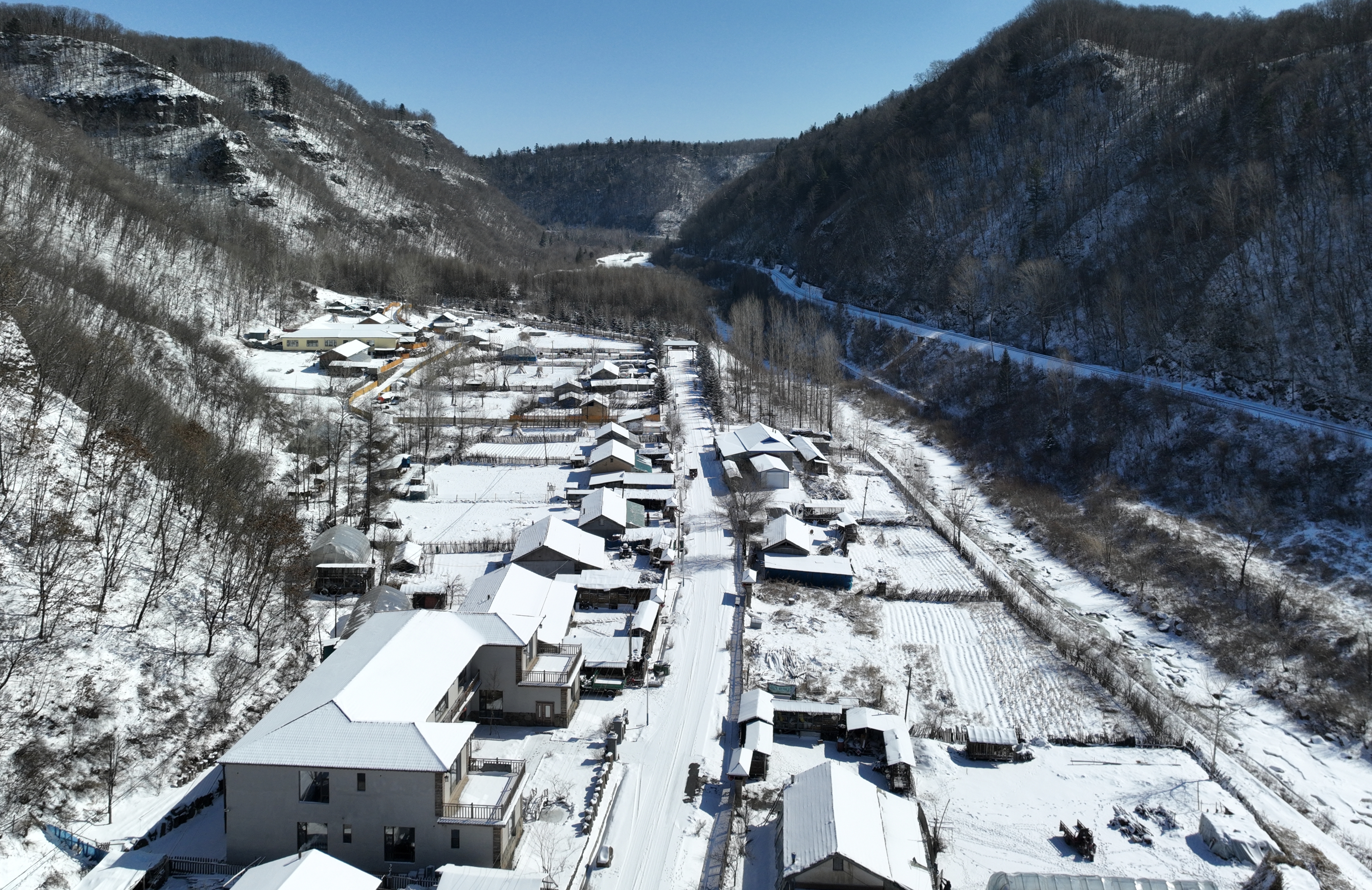 冬至,一場白雪悄然漫過長白山腹地,將撫松縣興隆鄉南天門村裹進一片溫柔的潔白里。兩排古樸民居在積雪的映襯下愈發雅致,民宿門前的紅燈籠輕輕搖曳,紅光穿透薄霧,與流淌的頭道松花江相映成趣。 誰曾想,這座默默無聞的小山村,如今卻憑借得天獨厚的自然稟賦與醇厚的文化底蘊,走出了一條“農文旅融合”之路,蛻變為遠近聞名的鄉村振興樣板示范村。