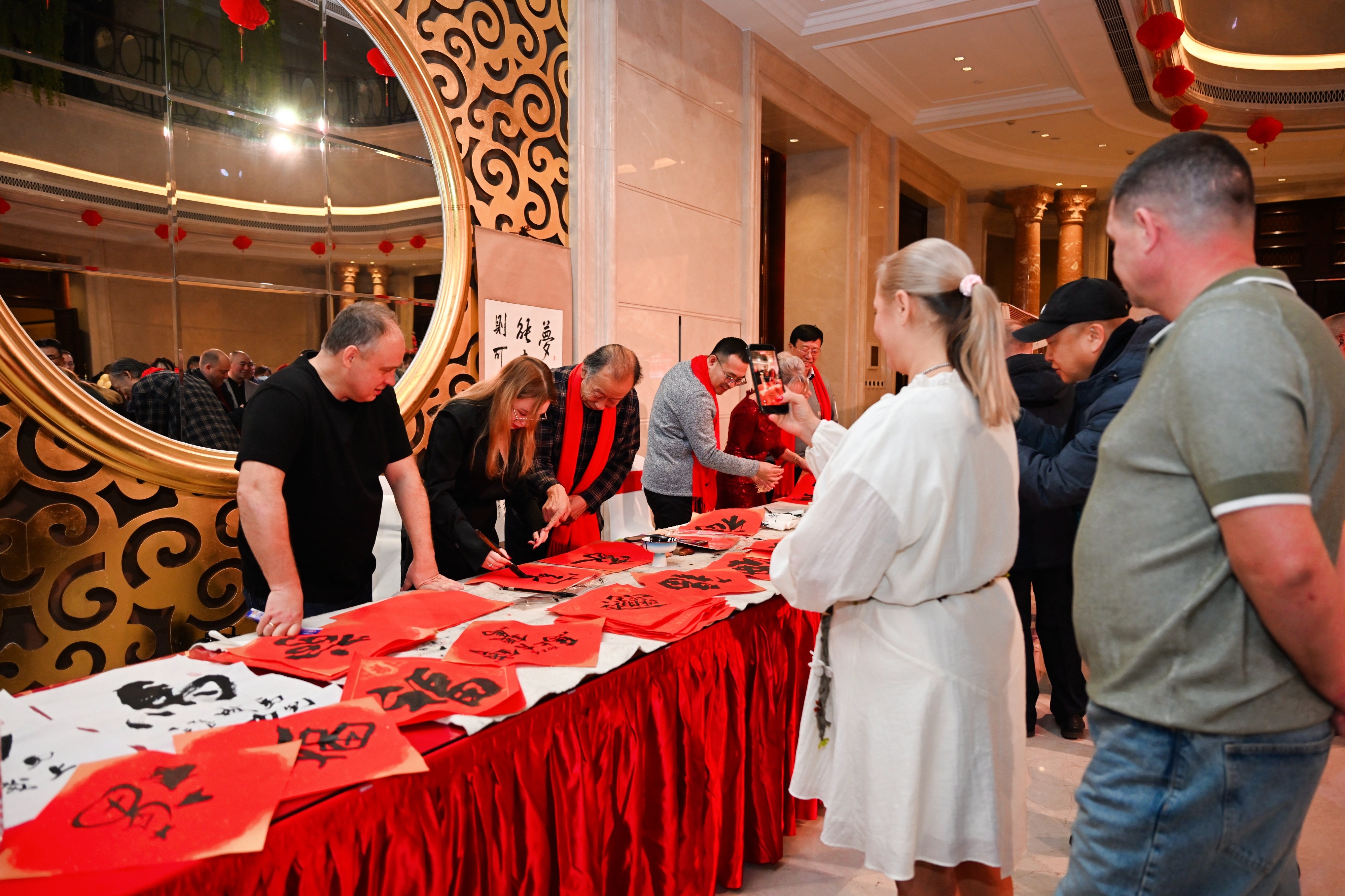 當晚19時起,非遺體驗區率先開放,剪紙、魚皮畫、泥人等極具中國特色的非遺作品集中展示,現場書法體驗環節更吸引了眾多中俄友人參與,大家在筆墨書香中感受中國傳統文化的匠心與溫度。同步展出的“感知吉林 青春同行”2025中俄青少年文化交流系列活動圖片展和“長春120小時——中俄媒體攝影記者采風活動”圖片展,通過一張張珍貴影像,生動再現了中俄青少年互動、媒體攜手采風的精彩瞬間,成為見證兩國友誼的生動載體。19時38分,璀璨的焰火準時綻放夜空,絢爛光影點亮冬日長春,為晚會拉開浪漫序幕。