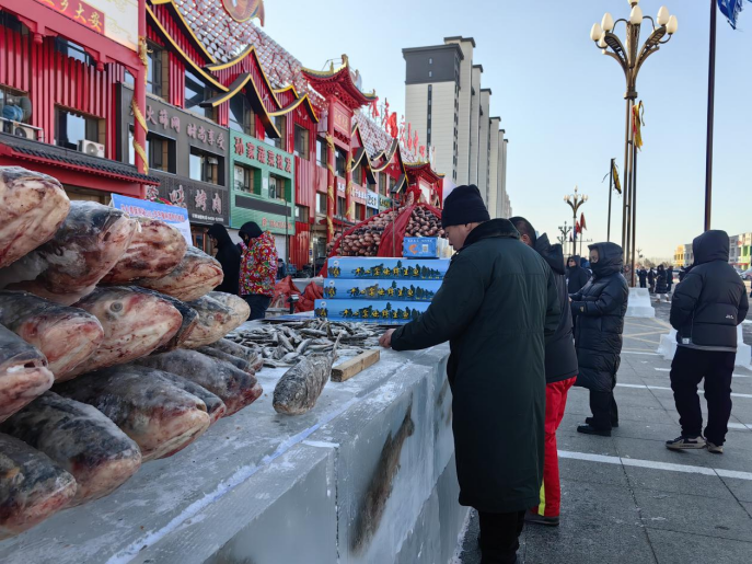 最引人矚目的莫過于頭魚拍賣環節。活動特別設置了月亮泡及玉龍湖冬捕雙頭魚拍賣,隨著拍賣師的一聲聲報價,現場氣氛愈發熱烈。最終,兩頭象征著吉祥與豐收的頭魚被熱心市民高價拍下,不僅傳承了古老的漁獵文化,更打響了大安漁產的名氣。“頭魚寓意著年年有余,能拍下頭魚,特別開心。而且大安的魚肉質鮮美,品質上乘,送給親朋好友也特別有面子。”拍下頭魚的市民笑著說道。漁業大集的開市,不僅激活了水產品消費的新引擎,更實現了文旅引流、水產增收、富民共贏的良好局面。