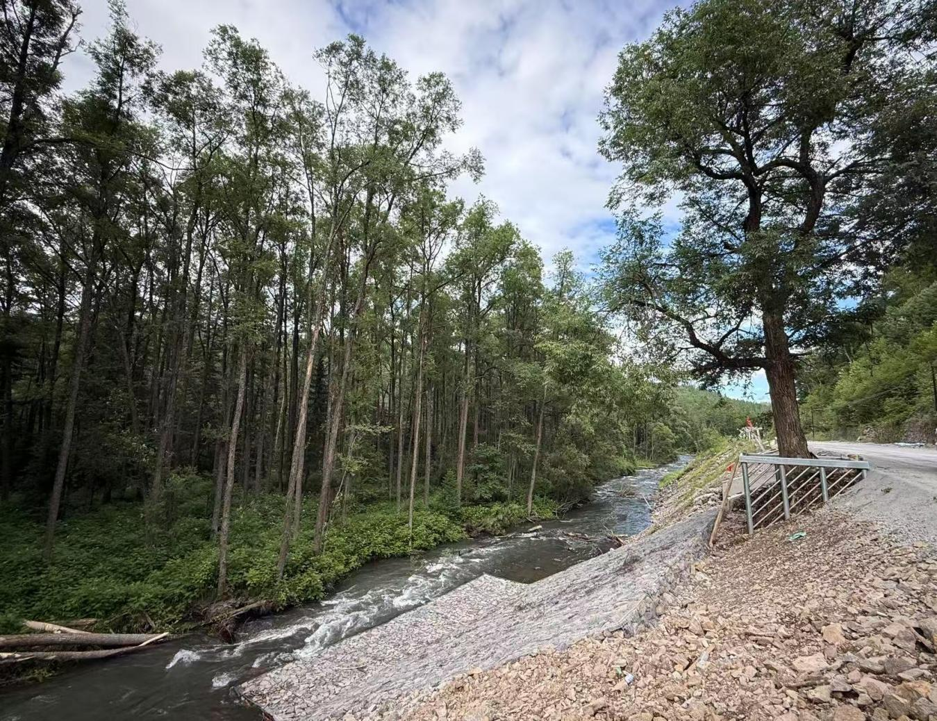 站在路旁,眼前的景象令人心曠神怡:古柳繁茂的樹冠在陽光下泛著新綠,粗壯的樹干上布滿歲月留下的裂紋。蒼勁的古柳靜靜矗立在鴨綠江畔,與對岸郁郁蔥蔥的樹木群隔江相望。江水奔流不息,將兩岸的綠意連成一片,這種“一江連兩國”的獨特景致,在331國道上顯得尤為珍貴。