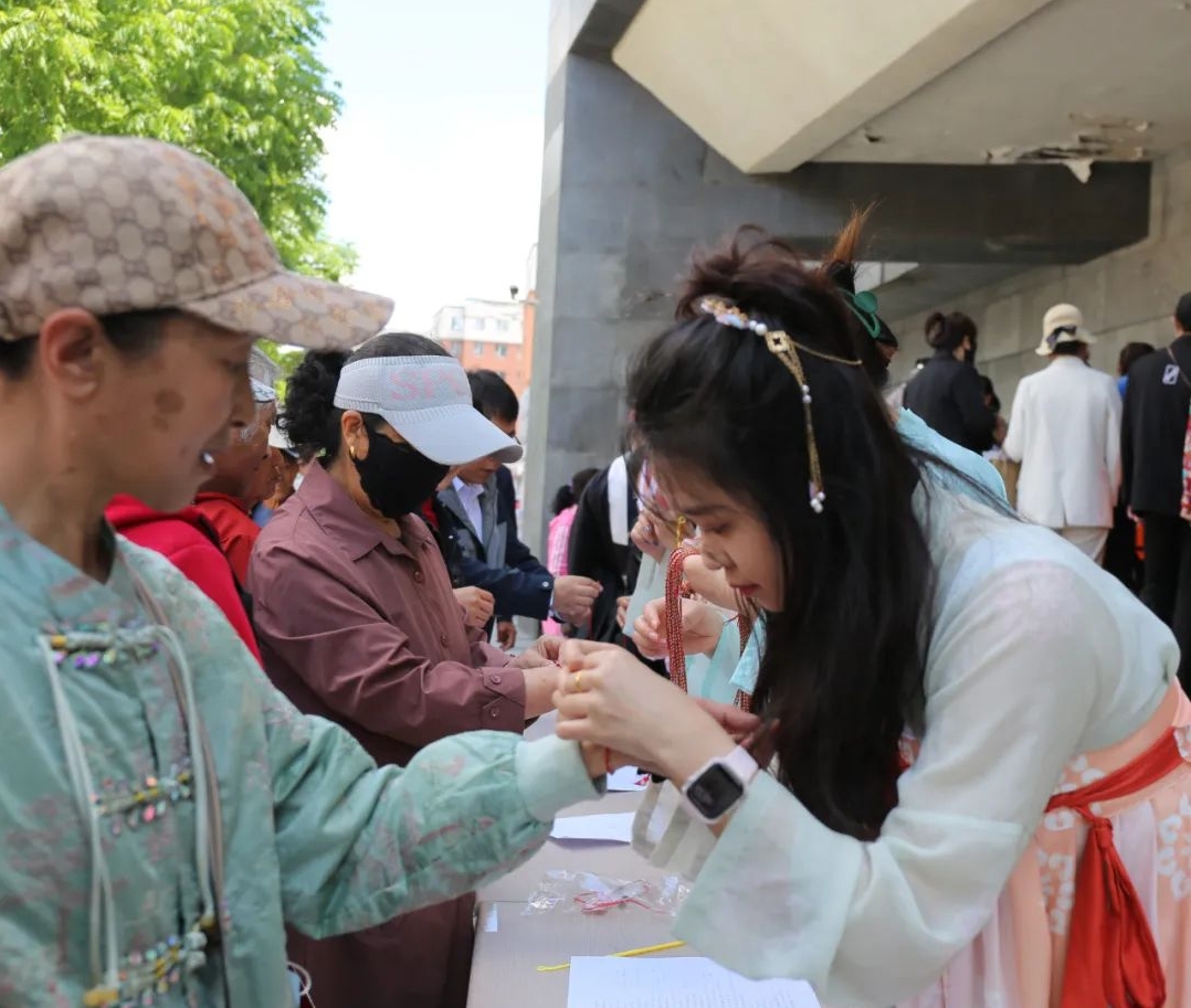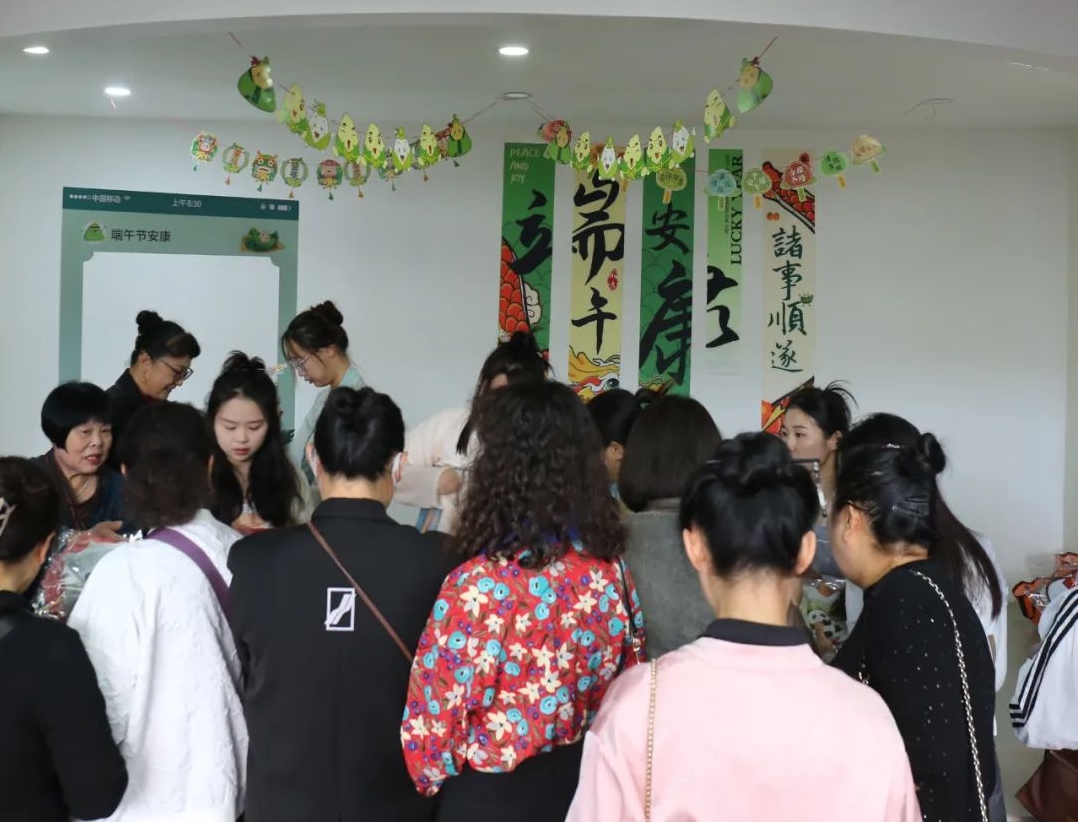 在DIY制作完成后,大家都迫不及待的佩戴上自己制作的精美配飾,或者將配飾贈與他人,傳遞自己的專屬節日祝福,現場氛圍融洽且溫馨,讓大家在身臨其境中感受濃濃的端午節日氛圍。