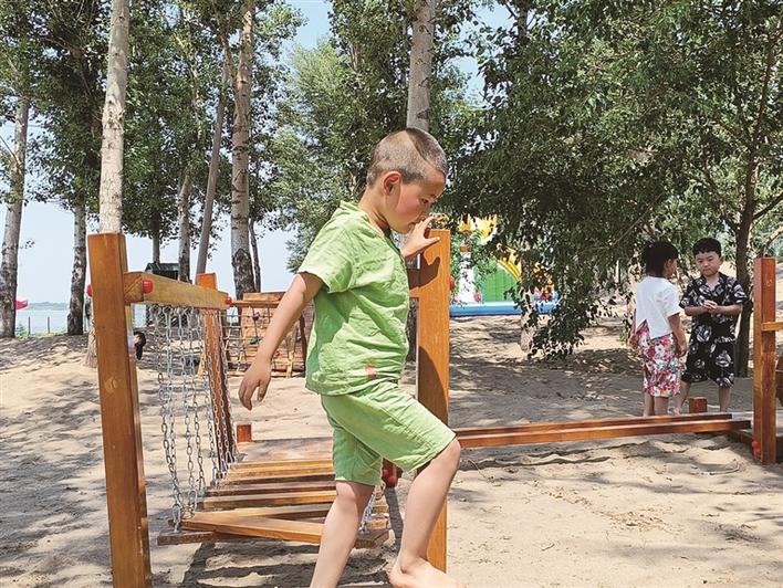 除了美食美景,兒童樂園也吸引了不少小朋友。他們在柔軟的沙地上不知疲倦地爬來爬去,玩得不亦樂乎。